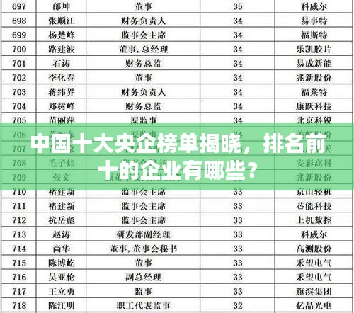 就是中国大央企排名前十名的企业,这些企业在各自的领域内发挥着重要作用,为国家经济的发展做出了巨大贡献,这些企业也在不断创新,提高服务质量,为用户提供更好的产品和服务体验,在未来,这些企业将继续发挥重要作用,推动中国经济实现更加繁荣的发展。