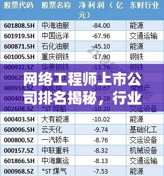 随着信息技术的飞速发展,网络工程师行业日益壮大,上市公司在其中扮演着重要角色,本文将为您揭示网络工程师领域的上市公司排名,带您了解行业内的领军者。