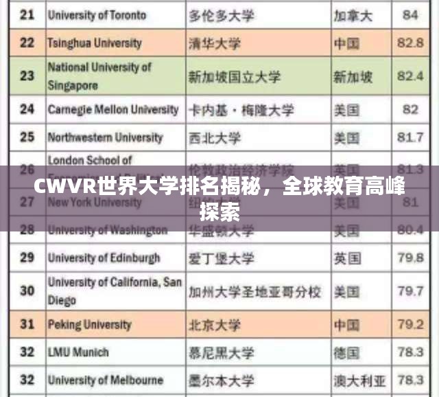 转载请注明来自马鞍山同杰良,本文标题:《CWVR世界大学排名揭秘,全球教育高峰探索》