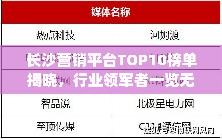 随着互联网的快速发展,营销平台在各行各业中扮演着越来越重要的角色,长沙作为一座充满活力的城市,其营销平台的发展尤为引人注目,本文将介绍长沙营销平台排名前十名,这些平台在长沙乃至全国范围内都具有广泛的影响力和良好的口碑。