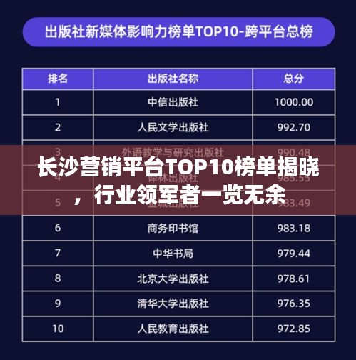 转载请注明来自马鞍山同杰良,本文标题:《长沙营销平台TOP10榜单揭晓,行业领军者一览无余》
