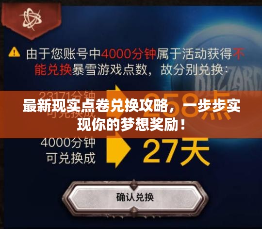 通过本文提供的最新现实点卷兑换攻略,希望你能轻松实现点卷兑换,将虚拟财富转化为现实收益,在实施过程中,请务必注意安全、遵守规则,谨慎选择兑换途径,祝你在虚拟世界的冒险之旅中取得更多成就!