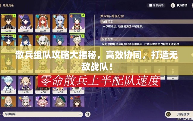 的不断更新,散兵组队在游戏中的重要性愈发凸显,本文将为大家带来最新的散兵组队攻略,从队伍构成、职责分配、战术策略等方面进行深入剖析,帮助大家打造一支高效协同、战力强大的无敌之师。