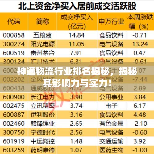 转载请注明来自马鞍山同杰良,本文标题:《神通物流行业排名揭秘,揭秘其影响力与实力!》