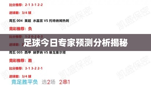 随着全球足球赛事的火热进行,今日的比赛尤为引人关注,无论是豪门强队之间的较量,还是新晋力量的崛起,都为球迷们带来了无限的期待与激情,在这样的背景下,足球预测专家们的意见与观点显得尤为重要。