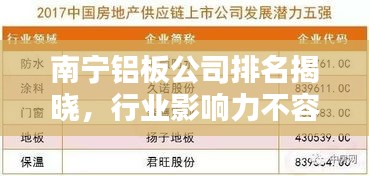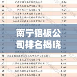 南宁市作为广西壮族自治区的首府,近年来在铝板行业取得了显著的发展成果,众多铝板公司在市场中崭露头角,为南宁乃至全国的铝板产业发展做出了重要贡献,本文将探讨南宁铝板公司的排名及其行业影响力,以飨广大读者。