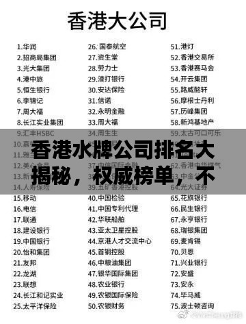 香港,作为国际金融、贸易和创新的中心,吸引了众多企业在此设立总部或分支机构,在水牌领域,香港同样汇聚了一批专业、高效的水牌公司,本文将为您详细介绍香港水牌公司的排名及相关信息。