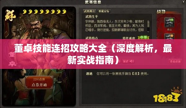 转载请注明来自马鞍山同杰良,本文标题:《董卓技能连招攻略大全(深度解析,最新实战指南)》