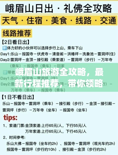 峨眉山是一座充满魅力的旅游胜地,无论是自然风光还是文化底蕴都让人流连忘返,希望本文提供的峨眉山旅游最新攻略能为您的旅行提供帮助,祝您旅途愉快!
