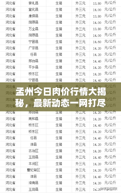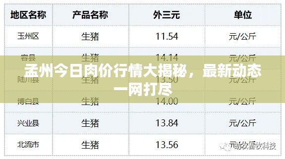 随着生活水平的提高,肉类的消费已成为人们日常饮食的重要组成部分,对于消费者来说,了解肉价行情是做出购买决策的重要依据,本文将重点关注孟州地区的肉价行情,为广大消费者提供最新的肉价信息。