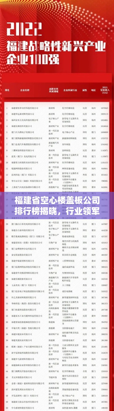 随着福建省建筑行业的快速发展,空心楼盖板作为重要的建筑材料之一,市场需求不断增长,本文将介绍福建省内几家知名的空心楼盖板公司及其排名,以供参考。