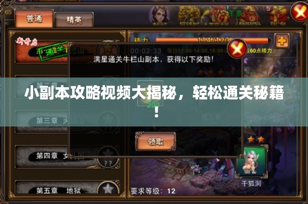 的不断更新,许多玩家对于游戏中的小副本也越发关注,小副本不仅难度适中,奖励丰厚,还是提升个人实力的好地方,就为大家带来一则“小副本最新攻略视频”,助你轻松通关,获取更多奖励。