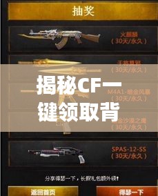 为了解决玩家在领取奖励过程中遇到的繁琐问题,“一键领取”功能应运而生,通过“百度一下cf一键领取”,玩家可以快速领取穿越火线中的各类奖励,这一功能极大地简化了领取流程,为玩家带来了极大的便利。
