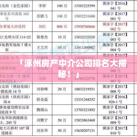 随着房地产市场的繁荣,涿州的房地产市场也日渐活跃,在这个背景下,许多卖房中介公司纷纷涌现,本文将为您介绍涿州卖房中介公司的排名,以帮助您更好地了解这些公司的实力和服务质量。