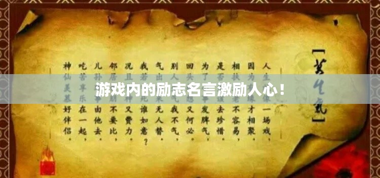 随着游戏产业的飞速发展,越来越多的游戏不仅仅是娱乐产品,它们还承载着深刻的思考和人生的智慧,在游戏中,有些励志语录以其独特的魅力和深刻的内涵,给玩家带来了无尽的鼓舞和力量,本文将探讨游戏里那些励志语录,分析它们如何影响我们的生活和工作。