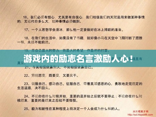 在游戏世界里,励志语录通常出现在剧情的关键时刻,或是作为角色的对话,给玩家带来正能量和信心,这些语录往往简洁明了,富有感染力,能够激发玩家的斗志和激情,它们不仅在游戏过程中给予玩家鼓励和支持,还在现实生活中产生了广泛的影响。