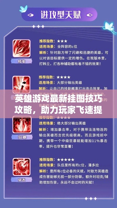 在探讨最新挂图技巧之前,我们需要对英雄游戏的基础知识有所了解,英雄游戏是一款策略性竞技游戏,玩家需要通过升级角色、搭配技能、选择装备等方式来提升战斗力,挂图则是游戏中获取资源、提升等级的重要途径之一,掌握游戏规则、角色技能以及装备搭配是挂图的基础。