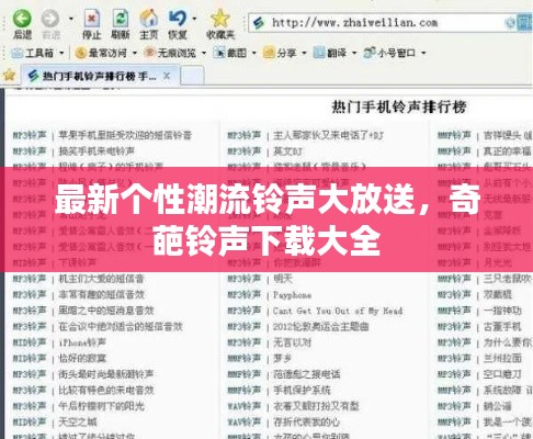 随着智能手机的普及,铃声已经成为我们日常生活中不可或缺的一部分,一款独特、有个性的铃声不仅能展现我们的个性,还能在繁杂的生活中带来一丝乐趣,本文将为大家介绍最新的个性奇葩铃声下载大全,让你轻松找到与众不同的铃声,展现独特魅力。