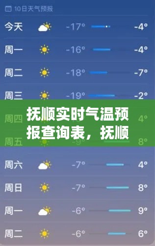 以下为抚顺实时气温预报查询表的内容,包括日期、最高气温、最低气温以及天气状况。