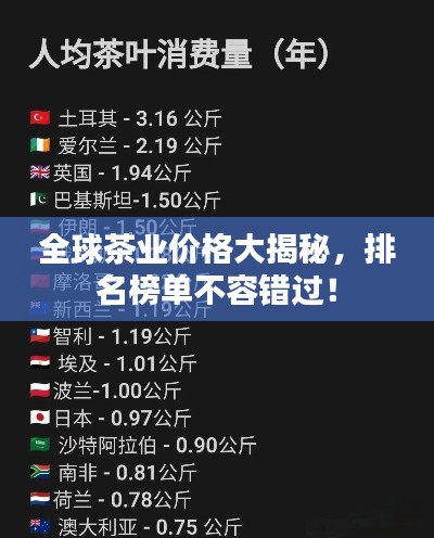 茶,这个古老而优雅的饮品,如今在全球范围内都受到了广泛的欢迎,茶的价格因多种因素而异,包括产地、品质、稀有性和市场需求等,下面我们就来探讨一下世界茶业的价格排名。