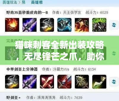 就是关于猫咪刺客出装的最新攻略,玩家们可以根据自身需求和战场情况,灵活选择装备和技能搭配,在实践中不断摸索和尝试,找到最适合自己的出装方案,成为真正的猫咪刺客大师,希望这份攻略能对广大玩家有所帮助,祝大家游戏愉快!