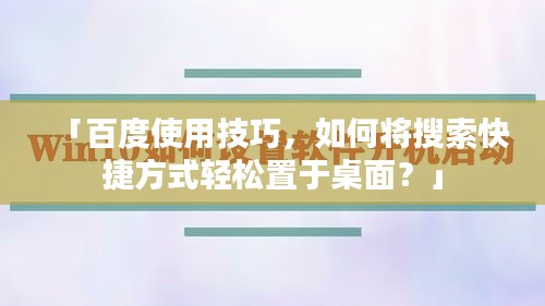 转载请注明来自马鞍山同杰良,本文标题:《「百度使用技巧,如何将搜索快捷方式轻松置于桌面?」》