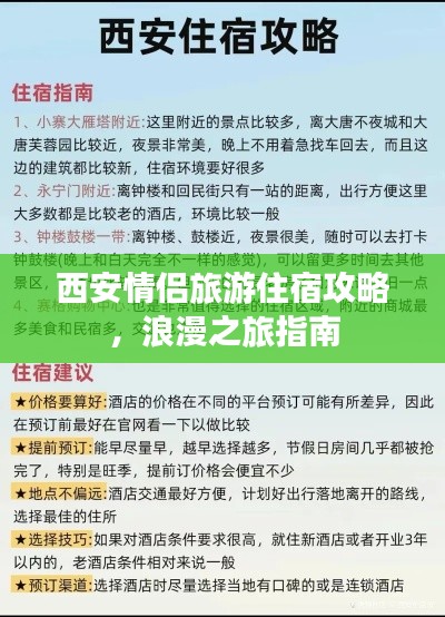 西安,这座古老而现代并存的城市,是许多旅行者的梦想目的地,如果你和伴侣计划来此感受历史的韵味和现代的活力,那么一份详尽的旅游住宿攻略将助你们开启浪漫的旅程。