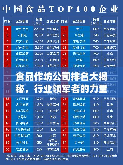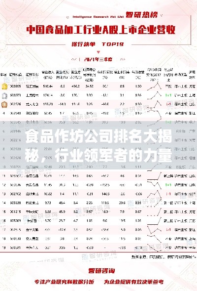 随着食品行业的快速发展,越来越多的食品作坊公司崭露头角,本文将围绕“食品作坊公司排名”这一主题,探讨行业内优秀企业的表现,揭示它们成功的秘诀。