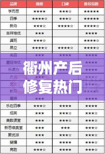衢州作为浙江省的重要城市,近年来随着人们生活水平的提高,越来越多的女性关注产后修复,产后修复是指针对产妇在分娩后身体和心理上的恢复与调整,帮助产妇尽快恢复到最佳状态,本文将介绍衢州产后修复排名前十名的机构,为产妇提供参考。