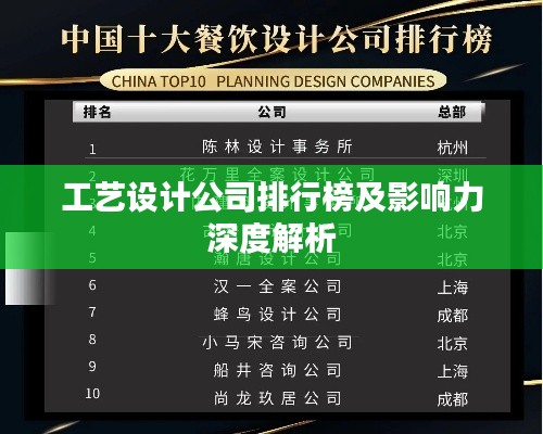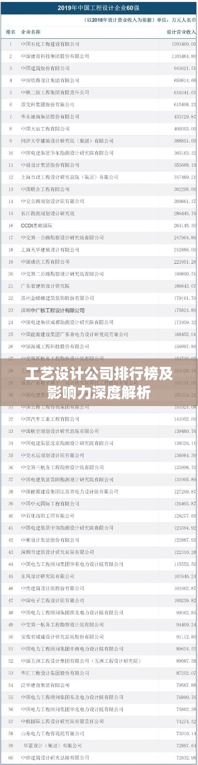 随着科技的不断进步和全球化的深入发展,工艺设计公司在各个行业中的作用日益凸显,它们不仅提供创新的设计理念,更是推动制造业进步的重要力量,本文将探讨工艺设计公司的排名及其影响力,以便更好地了解这些公司在推动全球工业发展中所扮演的角色。