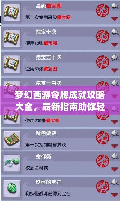 《梦幻西游》作为一款经典的角色扮演游戏,深受玩家喜爱,在游戏中,令牌成就系统是游戏的重要组成部分,完成令牌任务不仅可以提升角色实力,还可以获得丰厚的奖励,本文将为大家分享梦幻西游令牌成就的最新攻略,帮助玩家更好地完成任务,提升游戏体验。