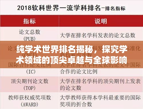 随着全球化的不断发展,学术领域的竞争也日益激烈,纯学术世界排名作为衡量学术机构或学者在学术领域内影响力与贡献的重要指标,逐渐受到广泛关注,本文将围绕纯学术世界排名展开讨论,探究其背后的意义、评价标准和影响因素。
