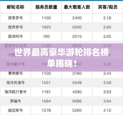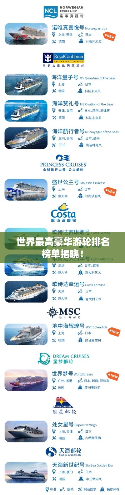 在旅游的世界里,豪华游船一直以其独特的魅力吸引着世界各地的游客,它们不仅提供了舒适的住宿环境,还有各种娱乐设施和豪华服务,随着旅游业的发展,越来越多的高档次游船开始涌现,我们将为您介绍世界最高的游船排名。