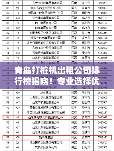 青岛作为山东省的重要城市,建筑行业发展迅速,各类工程项目众多,打桩机作为建筑施工中不可或缺的重要设备,其需求量大,市场广阔,本文将介绍青岛地区的打桩机出租公司排名,以便有需要的客户能够选择到合适的合作伙伴。