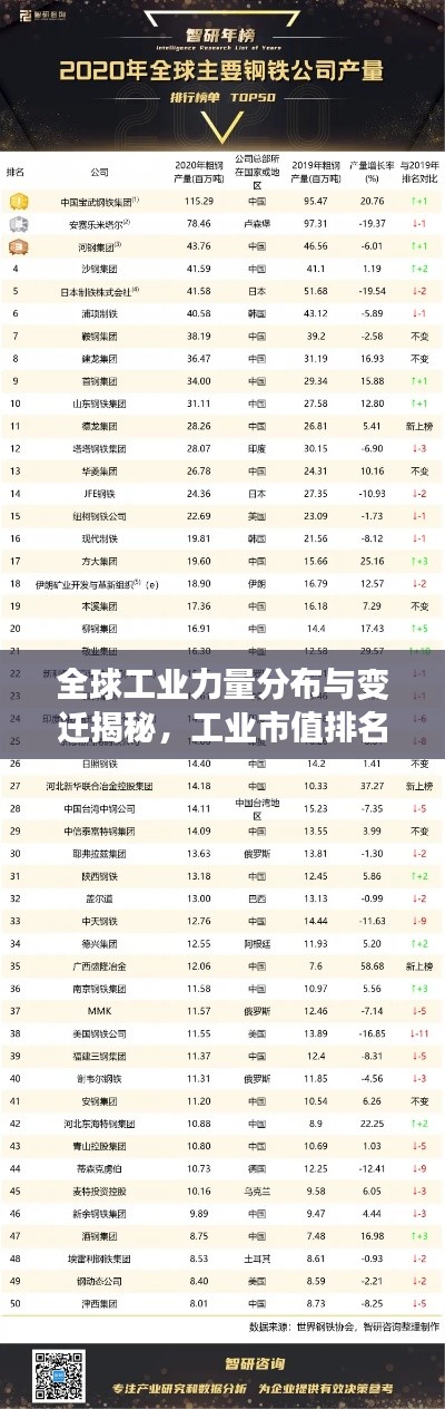 全球工业市值排名反映了各国在工业领域的综合实力和竞争力,随着智能化、数字化、绿色化等趋势的发展,全球工业格局将发生深刻变革,各国应抓住机遇,加强技术创新和产业升级,提升本国工业的竞争力,共同推动全球工业的繁荣发展。