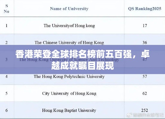 转载请注明来自马鞍山同杰良,本文标题:《香港荣登全球排名榜前五百强,卓越成就瞩目展现》