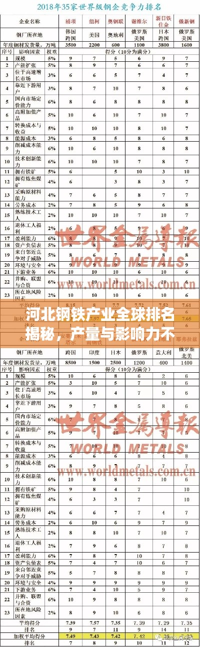 在全球钢铁产业格局中,河北的钢产量一直备受瞩目,近年来,随着全球经济的不断发展和工业化进程的加速,钢铁产业作为国民经济的重要支柱,其产量和影响力日益扩大,本文将深入探讨河北在全球钢产量排名中的地位及其影响力。
