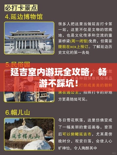 延吉市是一个充满魅力的城市,拥有丰富的旅游资源,本文为您提供了延吉室内旅游攻略,希望能够帮助您更好地了解这座城市,为您的旅行提供有益的参考,在延吉旅行期间,请务必注意安全和卫生,尽情享受这座城市的美丽和魅力,祝您旅途愉快!