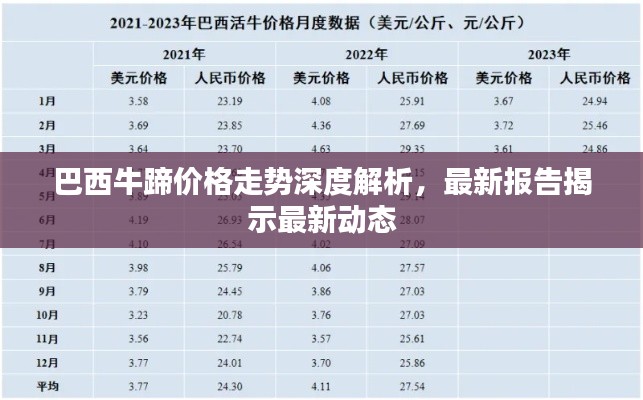 巴西作为全球最大的牛肉生产国之一,其牛肉及牛产品市场价格动态一直备受关注,近年来,巴西牛蹄的市场价格走势亦逐渐受到行业内外的重视,本报告旨在分析巴西牛蹄价格走势,并探讨未来可能的价格变动趋势。