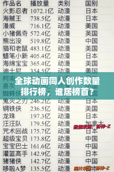 随着全球化的推进和互联网的普及,动画产业在全球范围内蓬勃发展,吸引了大量的粉丝和创作者,在这些动画作品中,有一些作品因其独特的魅力吸引了大量的同人创作,本文将探讨世界范围内动画同人数量排名的现象。