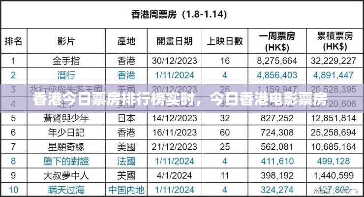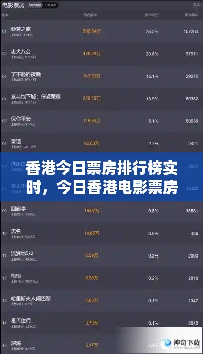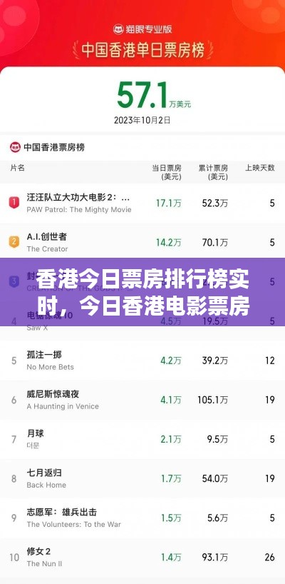 香港电影市场一直以来都是亚洲电影产业的重要一环,其票房排行榜的实时更新更是备受关注。以下是我们为您带来的香港今日票房排行榜实时情况,让我们一起来看看哪些电影在香港市场上备受追捧。
