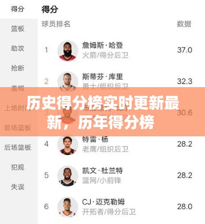 历史得分榜的实时更新是体育信息化发展的重要成果。它不仅方便了运动员和球迷,也为体育产业带来了新的发展机遇。随着技术的不断进步,我们有理由相信,未来历史得分榜的实时更新将会更加完善,为体育事业的发展贡献力量。