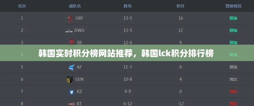 转载请注明来自马鞍山同杰良,本文标题:《韩国实时积分榜网站推荐,韩国lck积分排行榜 》