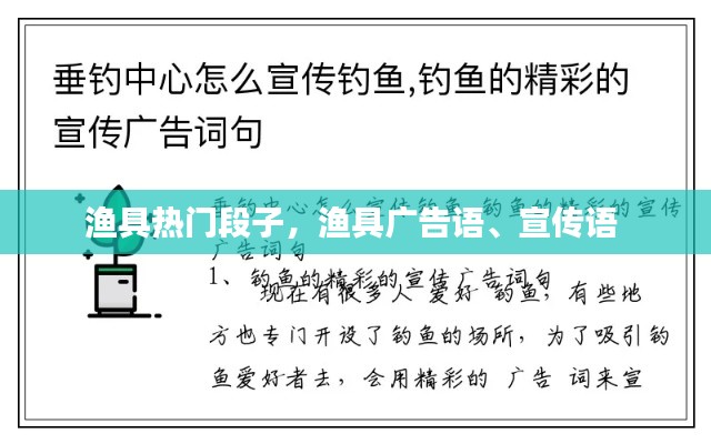 通过这些渔具热门段子,我们可以看到钓鱼人独特的幽默感和生活态度。他们在享受钓鱼乐趣的同时,也传递了积极向上的生活理念。让我们一起分享这些段子,感受钓鱼带来的快乐吧!