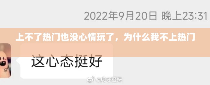 上不了热门,并不意味着生活失去了色彩。在这个信息爆炸的时代,每个人都有自己的闪光点。关键在于,我们要学会调整心态,找到属于自己的幸福之道。当心情不再受热门话题的左右,我们的生活才会真正充满乐趣。