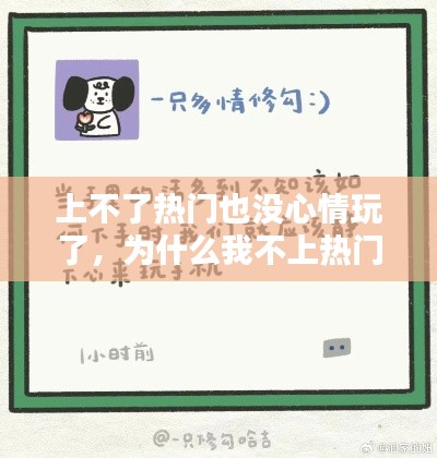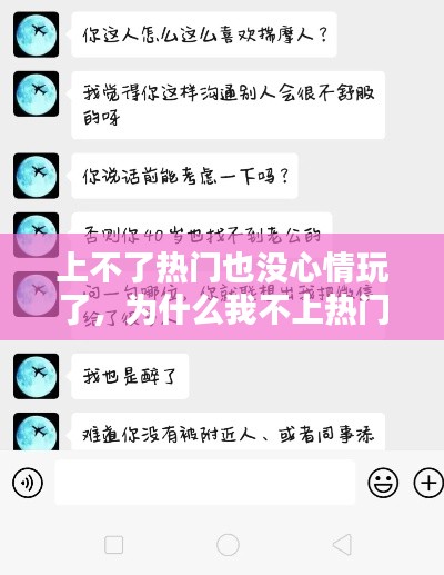 在互联网时代,热门话题就像是一股强大的吸引力,总是能迅速抓住人们的眼球。无论是社交媒体上的热门话题,还是游戏排行榜上的热门角色,都让人忍不住想要参与其中。然而,当自己努力参与却始终上不了热门时,那种失落感和挫败感便会油然而生。
