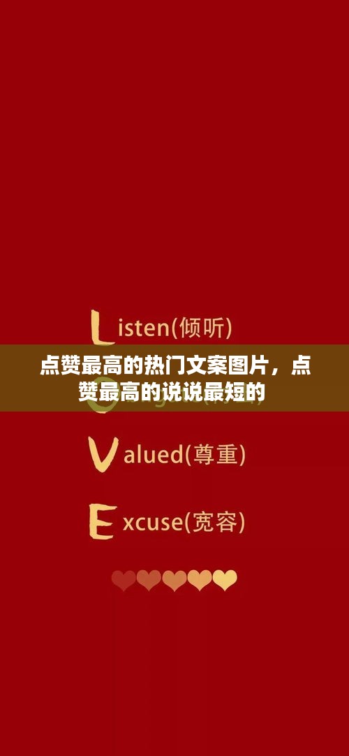 点赞最高的热门文案图片,背后往往有着一个个感人的故事。它们或传递着正能量,或引发人们的共鸣,或展现着创意和才华。每一次点赞,都是对创作者的认可,也是对美好生活的向往。在这个信息爆炸的时代,这些点赞最高的热门文案图片,成为了人们心灵的慰藉,也成为了网络文化的一部分。