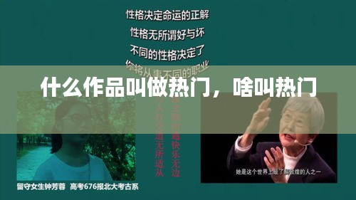 要探讨什么作品叫做热门,首先需要明确“热门”的定义。在大众文化中,热门作品通常指的是那些在短时间内迅速获得广泛关注、高度讨论和广泛传播的作品。这种作品的定义并不是一成不变的,它会随着时间、社会文化背景和传播渠道的变化而变化。