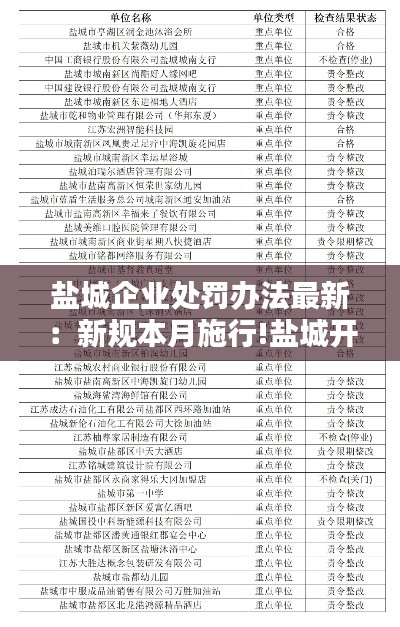 盐城,作为中国江苏省的重要城市,近年来经济发展迅速,吸引了众多企业前来投资兴业。然而,随着企业的增多,监管和处罚机制也日益完善。本文将详细介绍盐城企业处罚办法的最新动态,旨在帮助企业了解相关政策,遵守法律法规,促进企业健康发展。