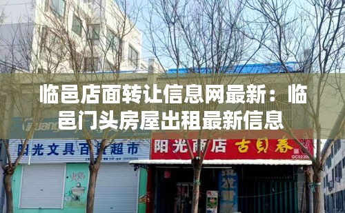 随着互联网的快速发展,各类信息平台如雨后春笋般涌现。其中,临邑店面转让信息网作为专注于临邑地区店面转让信息发布的平台,为广大创业者提供了便捷的服务。近日,临邑店面转让信息网更新了最新信息,让我们一起来看看都有哪些新鲜事吧!